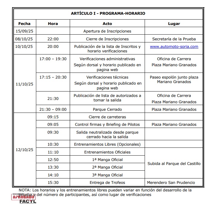 Tiempos on-line Reglamento Mapa del recorrido Subida Formulario de inscripción Mapa descarga carros y verificaciones Lista de inscritos Horario verificaciones Zona asistencias Cartel formato pdf Folleto informativo seguridad Anexo Acta
